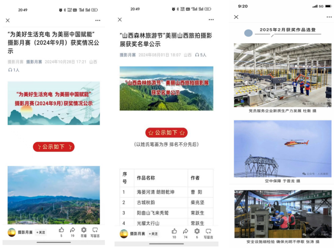 與山西攝影家協(xié)會(huì)、新華社、山西電視臺(tái)、人民攝影報(bào)等專業(yè)機(jī)構(gòu)、媒體合作,與文物、鄉(xiāng)村振興等政府部門對(duì)接,邀請(qǐng)利益相關(guān)方走進(jìn)保供和服務(wù)現(xiàn)場(chǎng),深入鄉(xiāng)村振興、文物保護(hù)、非遺傳承一線舉辦聯(lián)合采風(fēng)活動(dòng)。邀請(qǐng)主流媒體記者和基層通訊員聯(lián)合組建“電約拍”微信群,實(shí)時(shí)共享拍攝需求,暢通快速投稿、發(fā)稿渠道,利用主流媒體平臺(tái)提升影像作品傳播力引導(dǎo)力影響力公信力。