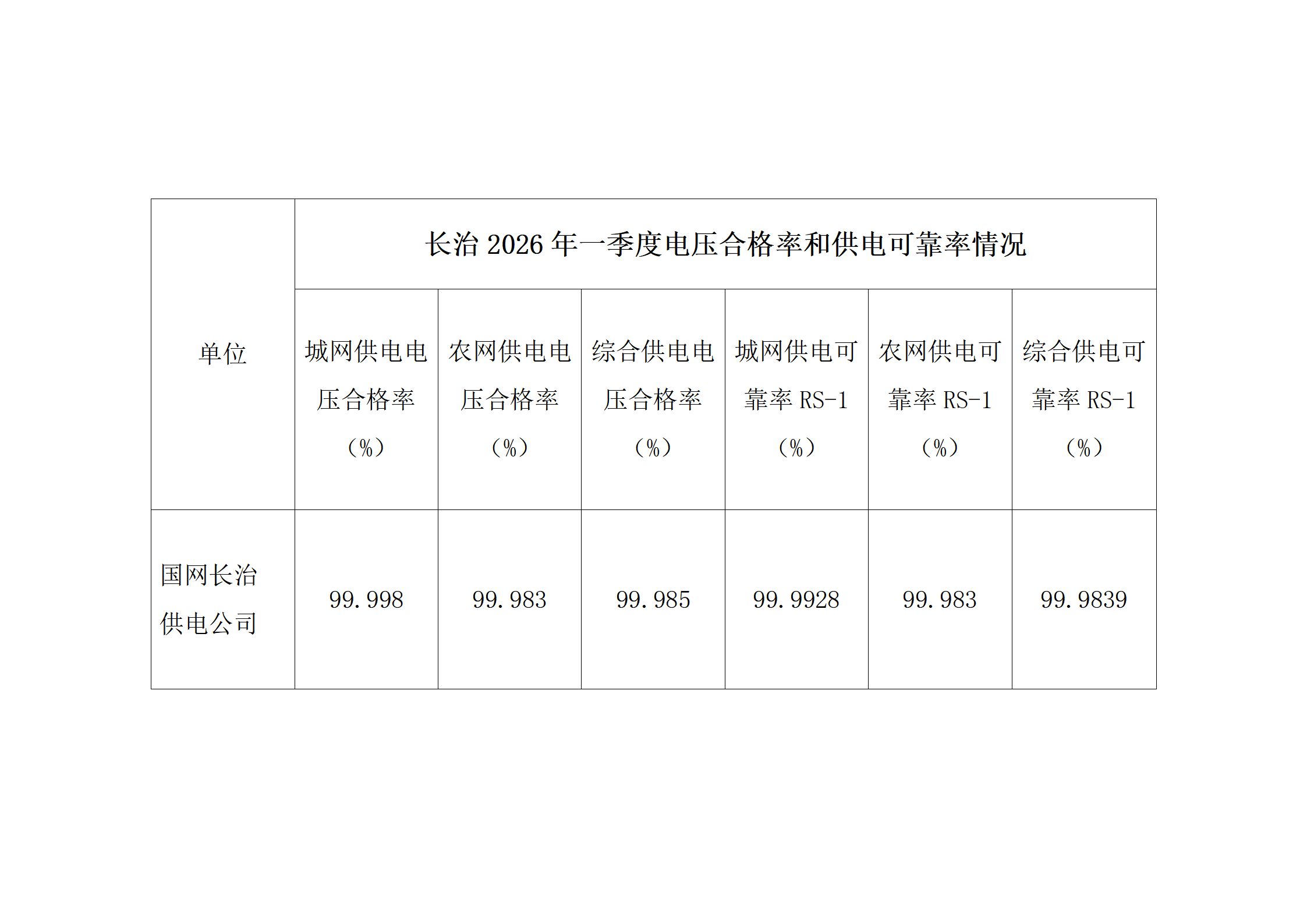 國網(wǎng)長治供電公示2026年一季度供電兩率完成情況
